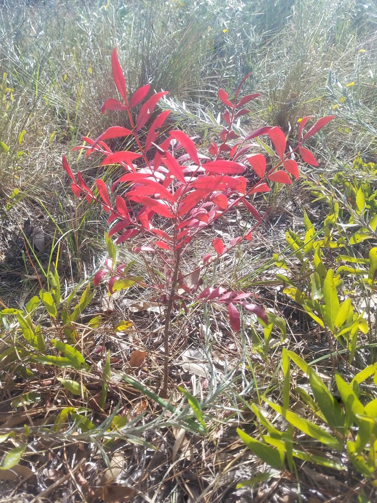 Shining Sumac is a Florida native fruit tree with nutritious sweet and sour berries and medicinal leaves and bark. It produces showy white flowers in the summer followed by glaucous purple-red berries and stunning fall color. The berries are retained throughout the winter, offering a vital food source to migratory birds at a time when other food is scarce. It is extremely drought tolerant, often growing in xeric habitats like Florida scrub and sandhill. Extremely tolerant of full sun and high temperatures, can thrive with no care once established.