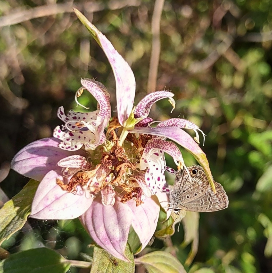 Spotted beebalm, also known as Horsemint, is a delicious herb that belongs in every kitchen and Florida garden. Its gorgeous flowers and bracts attract bees, butterflies, hummingbirds, and other pollinators, and like the leaves can be eaten fresh or dried. The main aromatic and medicinal compound found in the plant is Thymol, the same antiseptic and antifungal compound that gives Thyme and Oregano their distinctive flavor. The leaves taste very similar to Oregano while the bracts have a refreshing, somewhat minty flavor, and the flowers have a peppery bite. Grows well in sandy, well-drained soil. Prefers full sun but can grow in partial shade. Dried, hollow stems provide overwinter nesting habitat for solitary bees.